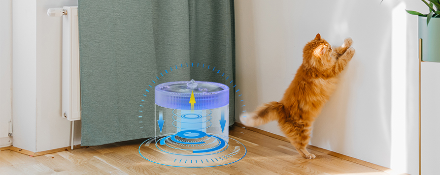 Hệ thống lọc tuần hoàn của đài phun nước có thiết kế thanh lọc toàn diện 360°. Nước liên tục lưu thông trong máy, loại bỏ tạp chất, mùi hôi và vi khuẩn một cách hiệu quả, đảm bảo chất lượng nước luôn trong lành và tinh khiết. Chức năng thanh lọc liên tục 24 giờ đảm bảo thú cưng luôn được tiếp cận với nước sạch, tốt cho sức khỏe, từ đó tăng lượng nước uống vào và ngăn ngừa hiệu quả các vấn đề về đường tiết niệu và mất nước.
